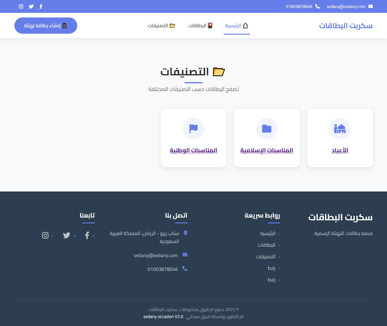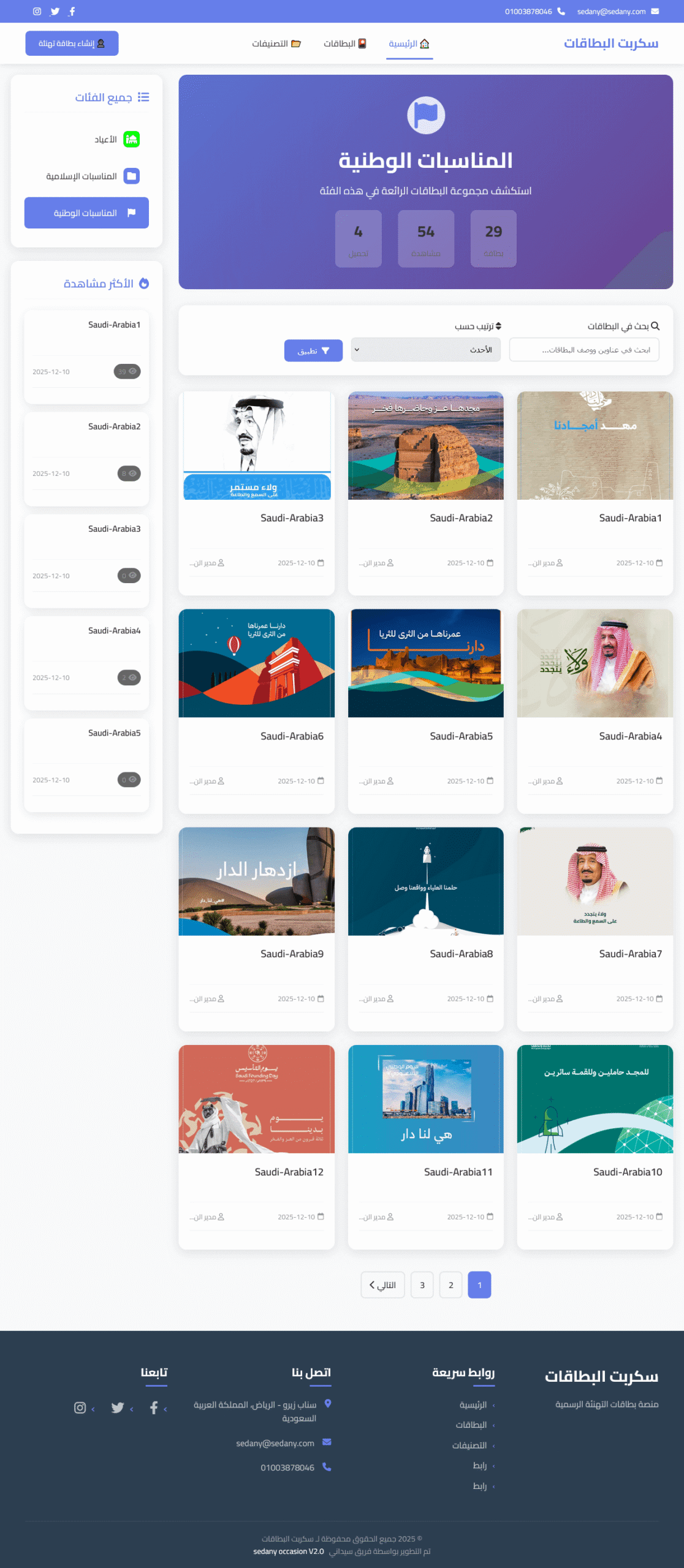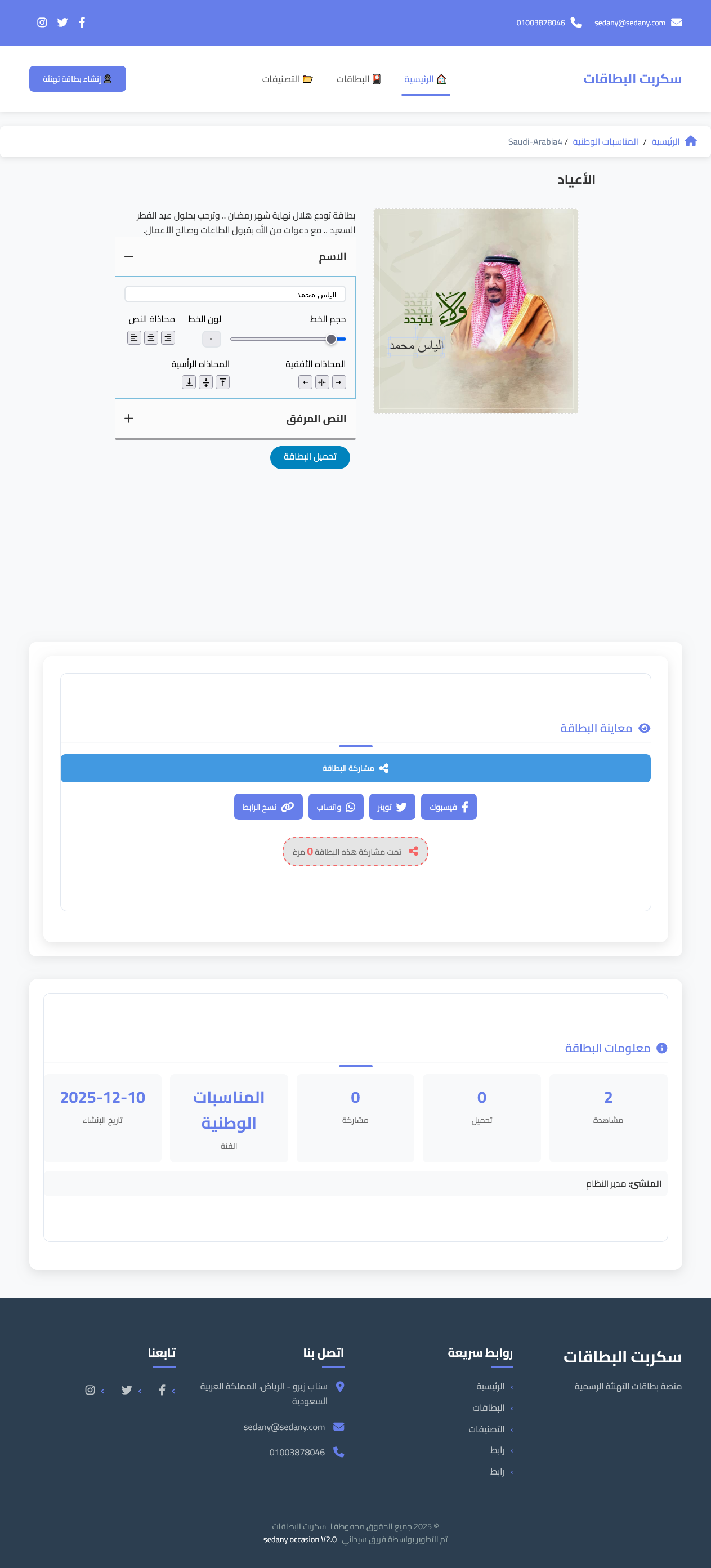 موقع احترافي لإنشاء بطاقات التهنئة والمناسبات مع لوحة تحكم متكاملة وإحصائيات مفصلة